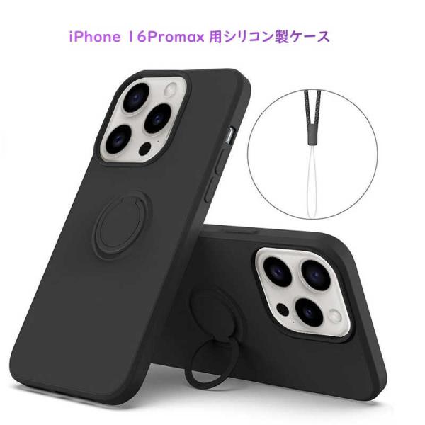 ROYALMONSTER iPhone 16 Promax シリコン製ケース リング付 BK RM-16PMSili-BK