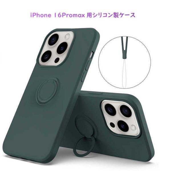 ROYALMONSTER iPhone 16 Promax シリコン製ケース リング付 DG RM-16PMSili-DG