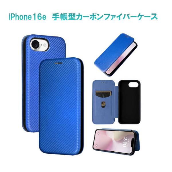 ROYALMONSTER iPhone 16e カーボンファイバー手帳型ケース BL RM-5300-16eBL