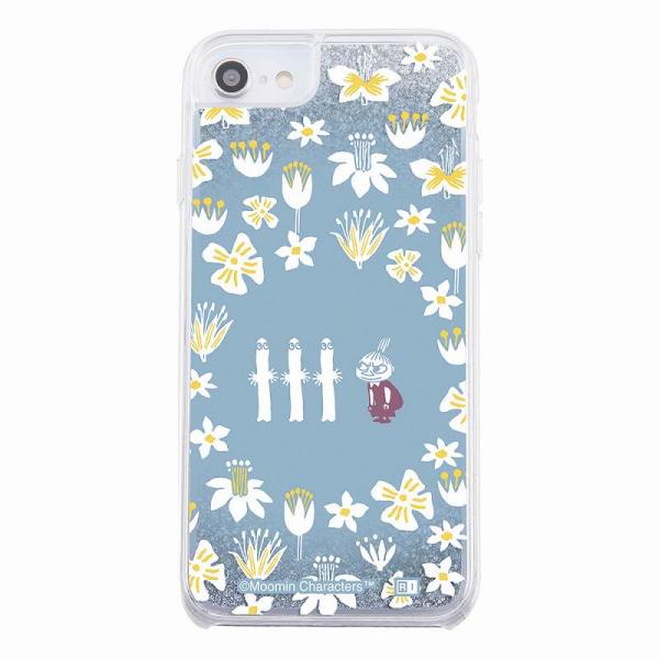 (C)Moomin Characters(TM) キラキララメが流れるiPhone SE(第3世代)/ iPhone SE(第2世代)/ 8 / 7 / 6s / 6 用グリッターケース。背面はPC素材、側面は衝撃に強いTPU素材を使用したハイブリッドケースです。ケースに閉じ込めたグリッターが『ムーミン』のデザインをよりかわいく演出します。キャラクター名: ミイ ( リトルミイ ) / ニョロニョロ ワイヤレス充電対応 Little My りとるみい にょろにょろ フラワー はな 花 Blue ブルー 青 北欧 ほくおう Tove Jansson トーベヤンソン Lars Jansson ラルス・ヤンソン