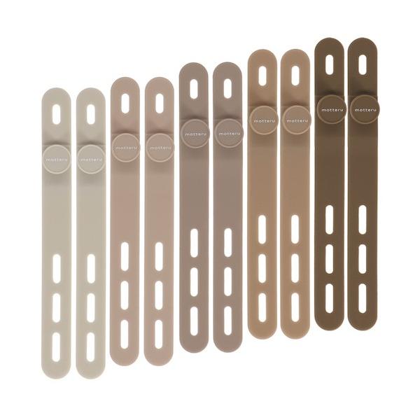 - ●すべすべしっとりとした優しい質感でボタンのように留められるケーブルバンド。カフェオレのような大人っぽく落ち着いた色彩のカフェカラー、5色×2本(計10本)入です。●一般的な面ファスナー製のようにバンド同士がくっついたり、ゴミが絡みつくこともありません。●4STEPで、誰でも簡単に留めることができます。●摩擦や引っ張りに強く、汚れたら丸洗いもできるため繰り返しご使用いただけます。水や汚れもさっと拭き取りできて、いつでも清潔に使うことができます。●食パンの袋を閉じたり、ビニール傘の目印にしたり、アイデア次第で用途はさまざま。色ごとに用途や目的を分けたり、気分に合わせてカラーを変えるのもおすすめです。●寸法/約W13×D1×H120mm●重量/約3g●色/カフェカラー●材質/シリコン●1パック=10本※寸法は1本あたり。最も厚いところでD10mm。※重量は1本あたり。※直径約5.5mmまでのケーブルを推奨。●メーカー/オウルテック●型番/MOT-CBBAND02-CF●JANコード/4570058780934※メーカー都合によりパッケージ・仕様等が予告なく変更される場合がございます。ご了承ください。本商品は自社サイトでも販売しているため、ご注文のタイミングにより、発送までにお時間をいただいたり、やむをえずキャンセルさせていただく場合がございます。※沖縄へのお届けは別途1650円(税込)の送料がかかります。※本商品はメーカーより取寄せ後の発送となるため、配送日はご指定頂けません。予めご了承ください。また、ご注文後のキャンセル・返品はお受けできません。予めご了承ください。