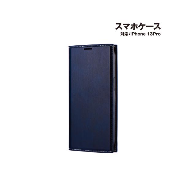 iPhone 13 Pro 薄型PUレザーフラップケース「PRIME」 LP-IP21PRINV / ネイビー 手帳型ケース フリップケース