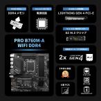 MSIマザーボード PRO B760M-A WIFI DDR4 【第14/13/12世代IntelCPU(LGA1700)対応】2xGen4高速M.2