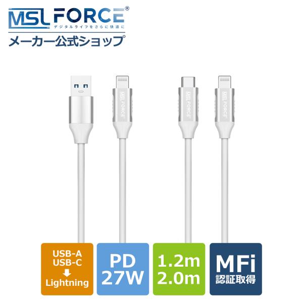 【39%OFF限定クーポン】適格請求書発行可 正規MFi認証品 USB-A USB-C Lightning PD27W 急速充電ケーブル 1.2m 2m 480Mbps データ転送 mf-alcl 送料無料 (39%)