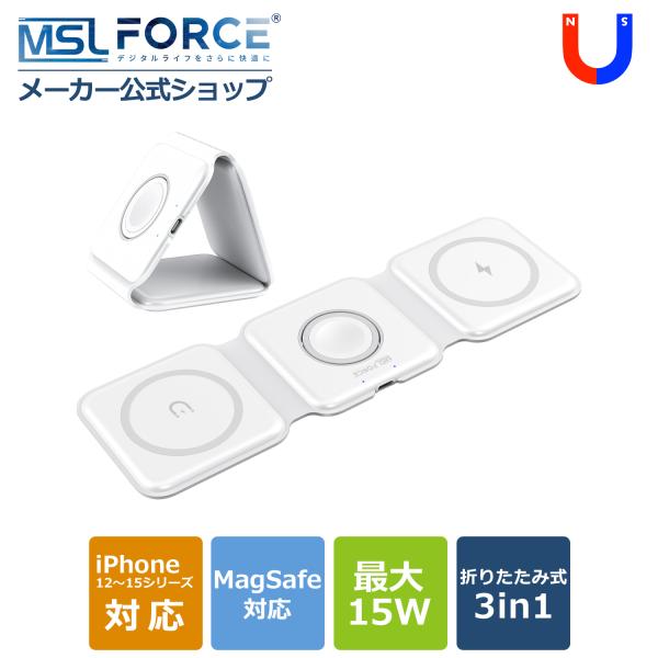【最大600円OFF限定クーポン】週末限定!適格請求書発行可 3in1 磁気ワイヤレス充電器 折りたたみ式 MagSafe 3台同時 15W 磁石パッド 最大15W出力 M2 送料無料