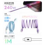 【最大600円OFF限定クーポン】適格請求書発行可 USB-C ケーブル 240W 超高速充電 1m マグネット自動収納 シリコン素材 PD対応 480Mbps 高速データ転送 送料無料