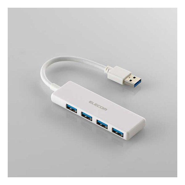 ELECOM エレコム USBハブ U3H-H040シリーズ USB 5Gbps/4ポート/薄型1cm/ケーブル10cm/ホワイト U3H-H040WH(2637812)