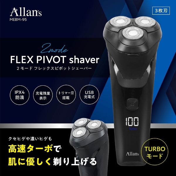メンズシェーバー 電気シェーバー 髭剃り マクロス Allans 2モード フレックスピボットシェーバー MEBM-95