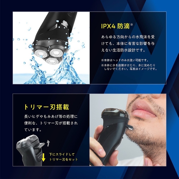肌に密着して剃り上げるフレックスピボットヘッド搭載で、顔の輪郭に沿ってシェービング可能です。