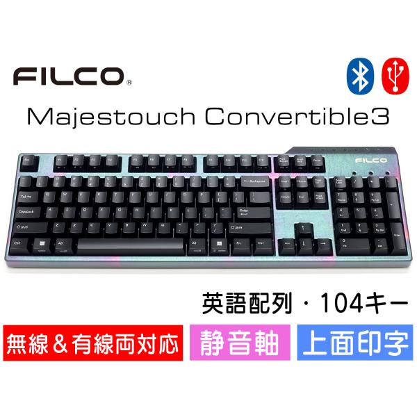 FILCO Majestouch Convertible 3 漆彩虹モデル 静音赤軸 フルサイズ 英語配列 104キー US ASCII Bluetooth無線&USB有線両対応 DIPスイッチ