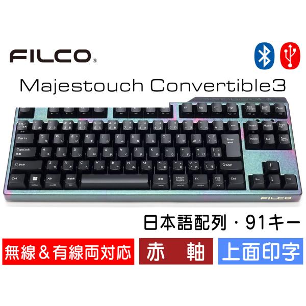 FILCO Majestouch Convertible 3 漆彩虹モデル 赤軸 テンキーレス 日本語配列 91キー Bluetooth無線&USB有線両対応 DIPスイッチ