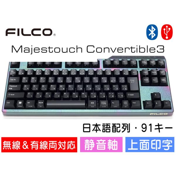 FILCO Majestouch Convertible 3 漆彩虹モデル 静音赤軸 テンキーレス 日本語配列 91キー Bluetooth無線&USB有線両対応 DIPスイッチ