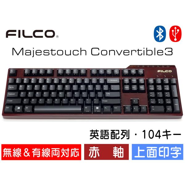 FILCO Majestouch Convertible 3 漆葡萄モデル 赤軸 フルサイズ 英語配列 104キー US ASCII Bluetooth無線&USB有線両対応 DIPスイッチ