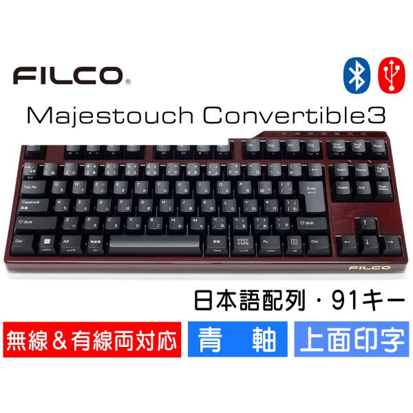 FILCO Majestouch Convertible 3 漆葡萄モデル 青軸 テンキーレス 日本語配列 91キー Tenkeyless Bluetooth無線&USB有線両対応 DIPスイッチ