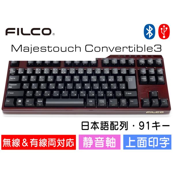 FILCO Majestouch Convertible 3 漆葡萄モデル 静音赤軸 テンキーレス 日本語配列 91キー Tenkeyless Bluetooth無線&USB有線両対応 DIPスイッチ