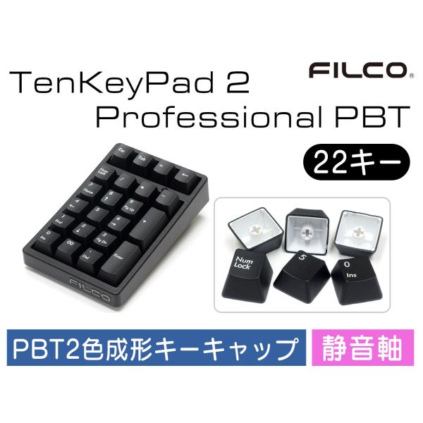 【22キー・静音赤軸】FILCO Majestouch TenKeyPad 2 Professional PBT2色成形キーキャップ CHERRY MX静音赤軸 黒 テンキー NumLock非連動