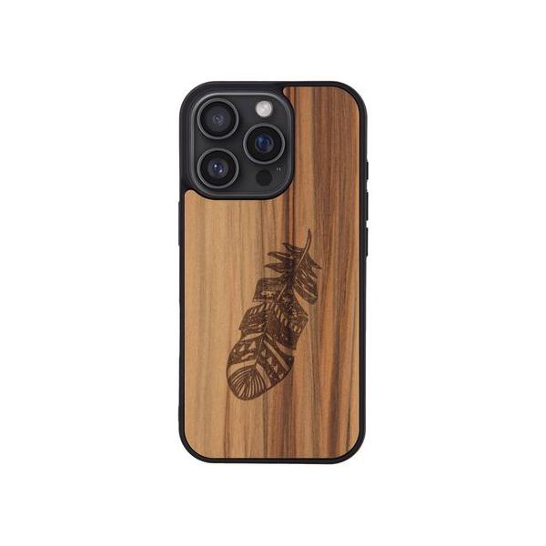 man&wood MagSafe対応天然木ケース for iPhone 16 Pro ネイティブフェザー 仕入先在庫品