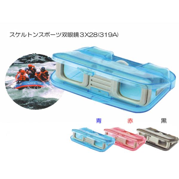 スケルトン スポーツ 双眼鏡 3X28 (319A) 色: 赤 青 黒 3倍率 3倍 コンパクト オペラグラス 小型 軽量 ミニ双眼鏡 販促品 ノベルティ 景品 粗品