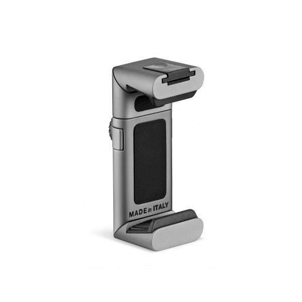 "TwistGripスマートフォンアダプター" は、高級感あるデザインと質感にこだわった、ユニバーサルタイプのスマートフォンアダプターです。高さも約10cmで重さも80gと、ポケットに入り持ち運びが簡単です。 イタリア製の本製品ボディ部分は重厚感のあるアルミニウム製。スマートフォン本体だけではなく、スマートフォンアクセサリーにもこだわりたい方にはおすすめの製品です。 アダプター底辺部についている1/4インチ三脚ネジをつかって、ミニ三脚やセルフィースティック等に装着してお使いいただければ、様々なアングルでの撮影が可能になります。 また、本体上部にはアクセサリーシューを装備しているため、LEDライトなどを装着して同時に使う - 楽天での商品説明(Manfrotto Outlet Store)