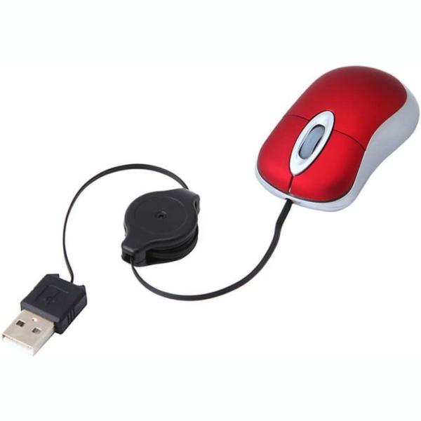 【並行輸入品】コードリールタイプ 光学式 ミニUSBマウス スパイダーマウス 《レッド》 巻き取り 軽量 超小型マウス(定形外郵便、送料別商品)