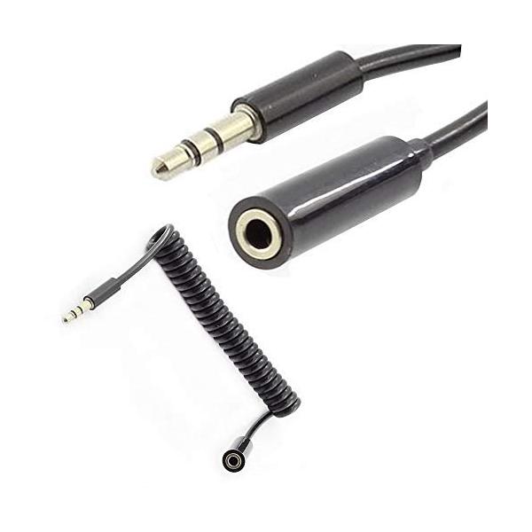 3.5mm コイルケーブル、3.5mm3極オスにメス ステレオオーディオケーブル コイル式 Aux 3.5オーディオコード伸縮自在 3.5mm DCプ