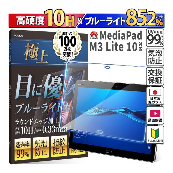 MeidiaPad M3 Lite 10 ブルーライトカット 強化ガラス フィルム タブレットケースに干渉しない 極上 フィルム HUAWEI MeidiaPad M3 Lite 10 液晶保護