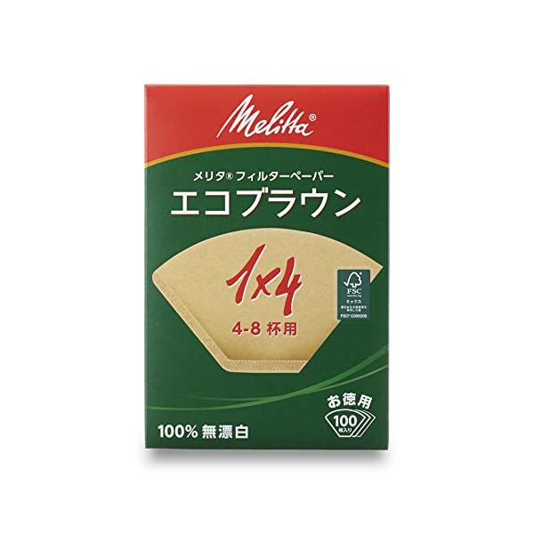 メリタ(Melitta) フィルターペーパー 4~8杯用 エコブラウン FSCミックス 1x4 ナチュラルブラウン 100枚入 PE-14GBN