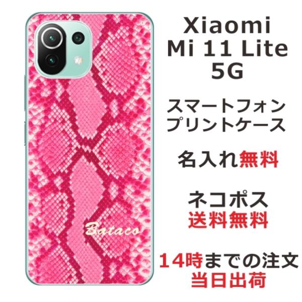 Xiaomi Mi 11 Lite 5G ケース シャオミ M11ライト 5G カバー らふら 名入れ へび柄 ピンク