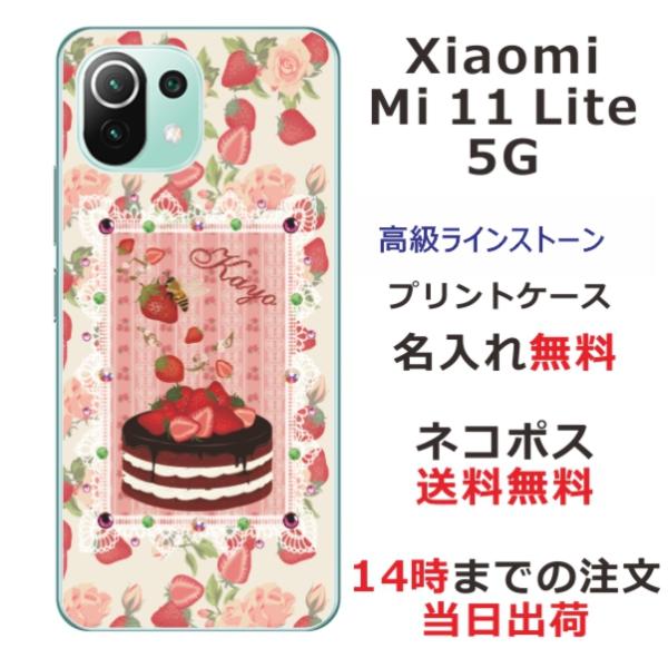 Xiaomi Mi 11 Lite 5G ケース シャオミ M11ライト 5G カバー ラインストーン かわいい らふら 名入れ ストロベリーケーキ