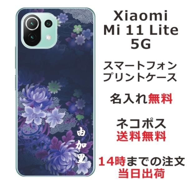 Xiaomi Mi 11 Lite 5G ケース シャオミ M11ライト 5G カバー らふら 名入れ 和柄 和花青紫グラデ