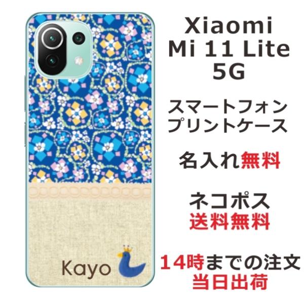 Xiaomi Mi 11 Lite 5G ケース シャオミ M11ライト 5G カバー らふら 名入れ 北欧デザイン フラワー ブルー