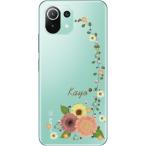 Xiaomi Mi 11 Lite 5G ケース シャオミ M11ライト 5G カバー ラインストーン かわいい フラワー 花柄 らふら 名入れ 押し花風 パステル アイビー