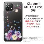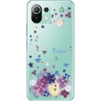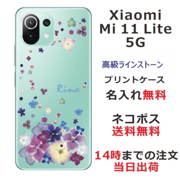 Xiaomi Mi 11 Lite 5G ケース シャオミ M11ライト 5G カバー ラインストーン かわいい フラワー 花柄 らふら 名入れ 押し花風 デコレーション パープル