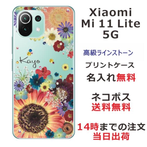 Xiaomi Mi 11 Lite 5G ケース シャオミ M11ライト 5G カバー ラインストーン かわいい フラワー 花柄 らふら 名入れ 押し花風 フラワーアレンジカラフル