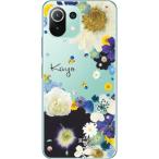 Xiaomi Mi 11 Lite 5G ケース シャオミ M11ライト 5G カバー ラインストーン かわいい フラワー 花柄 らふら 名入れ 押し花風 フラワーアレンジブルー