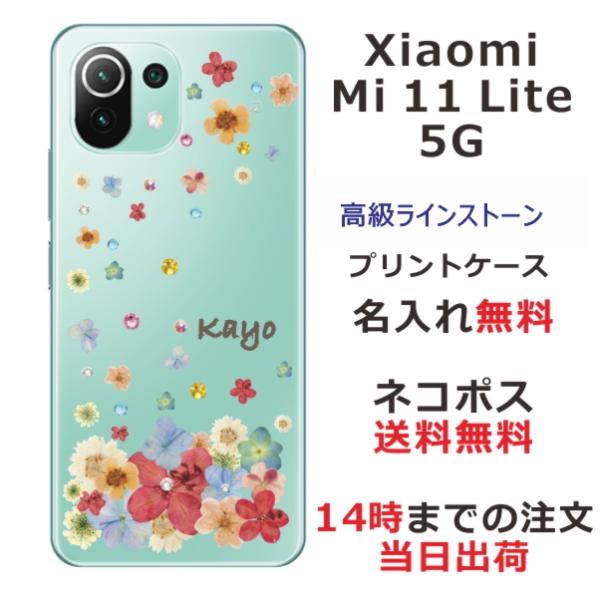 Xiaomi Mi 11 Lite 5G ケース シャオミ M11ライト 5G カバー ラインストーン かわいい フラワー 花柄 らふら 名入れ 押し花風 パステルダンシンフラワー