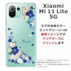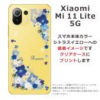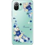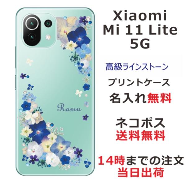Xiaomi Mi 11 Lite 5G ケース シャオミ M11ライト 5G カバー ラインストーン かわいい フラワー 花柄 らふら 名入れ 押し花風 ビビットブルーフラワー