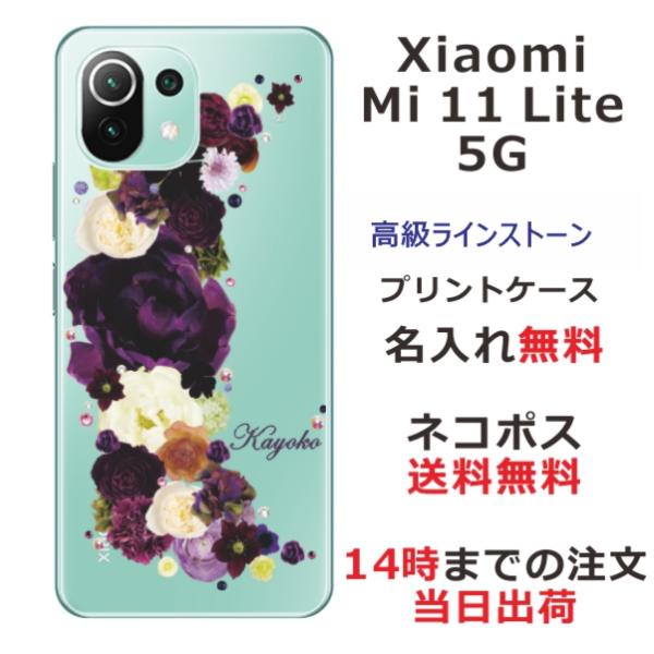 Xiaomi Mi 11 Lite 5G ケース シャオミ M11ライト 5G カバー ラインストーン かわいい フラワー 花柄 らふら 名入れ 押し花風 クレッシェンドパープル