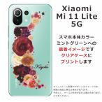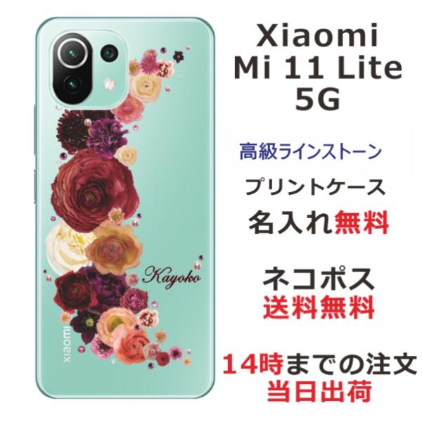 Xiaomi Mi 11 Lite 5G ケース シャオミ M11ライト 5G カバー ラインストーン かわいい フラワー 花柄 らふら 名入れ 押し花風 クレッシェンドレッド