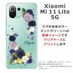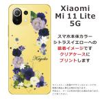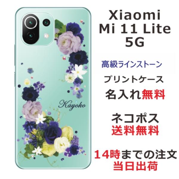 Xiaomi Mi 11 Lite 5G ケース シャオミ M11ライト 5G カバー ラインストーン かわいい フラワー 花柄 らふら 名入れ 押し花風 ブルーアレンジ