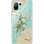 Xiaomi Mi 11 Lite 5G ケース シャオミ M11ライト 5G カバー ラインストーン かわいい フラワー 花柄 らふら 名入れ 押し花風 マーガレットレース