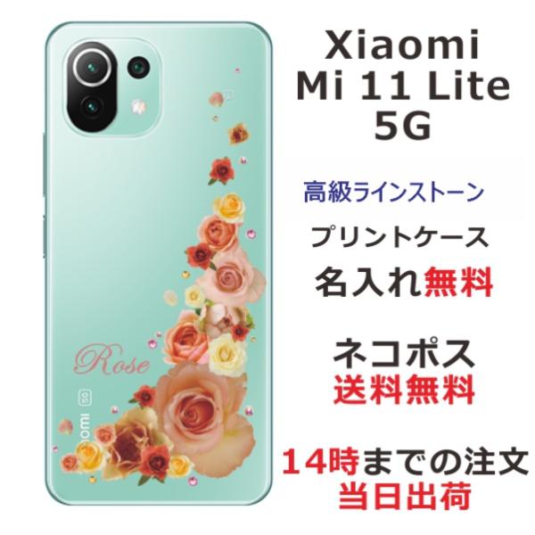 Xiaomi Mi 11 Lite 5G ケース シャオミ M11ライト 5G カバー ラインストーン かわいい フラワー 花柄 らふら 名入れ 押し花風 バラ