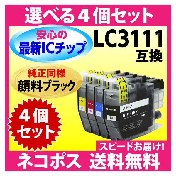 ブラザー プリンターインク LC3111-4PK 選べる4個セット〔純正同様 顔料ブラック〕LC3111 互換インクカートリッジ 最新チップ搭載