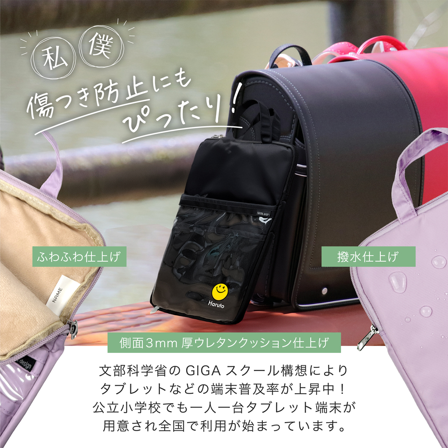 小学生 小学生向け 子供用 キッズ 小学校 学校用 学習用 GIGAスクール 授業用 持ち運び 撥水 収納 ポケット付き 軽量 丈夫 取っ手付き ファスナー付き 男の子 女の子 シンプル かわいい おしゃれ 黒 パープル グリーン 可愛い 名入れ - 楽天での商品説明(nichie * ニチエー)