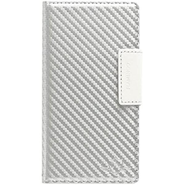 Natural Design マルチタイプ 手帳型 ケース FLAMINGO Carbon シルバーxホワイト 約4.7〜5.2インチ 多種対応 Xperia AQUOS