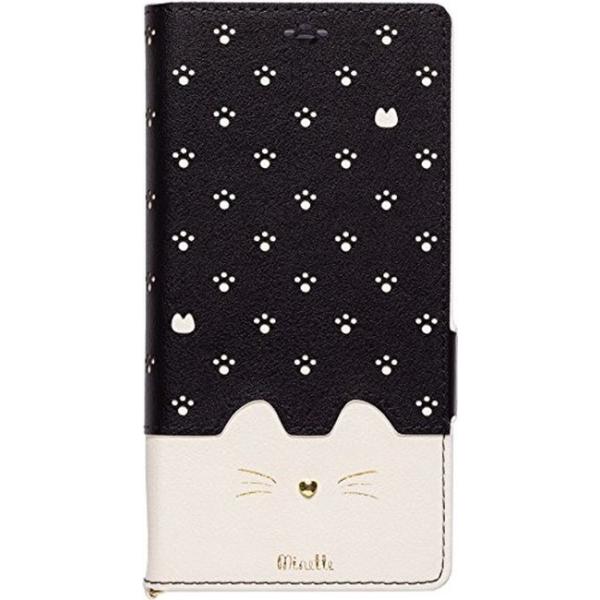 Natural design Xperia XZ2 手帳型 ケース (5.7インチ) 猫 上質PUレザー Minette Black ブラック XZ2-MIN06