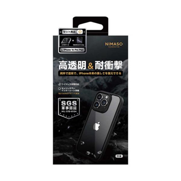 NIMASO iP16 Pro Max TPUフレーム+PCケース ガラスフィルムセット (ニマソ) ブラック NI-D1-16DS0103