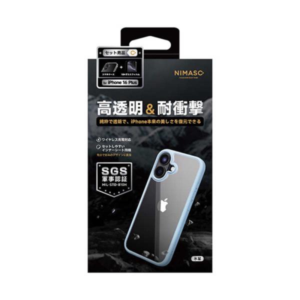 NIMASO iP16 Plus TPUフレーム+PCケース ガラスフィルムセット (ニマソ) ブルー NI-D1-16BS0109