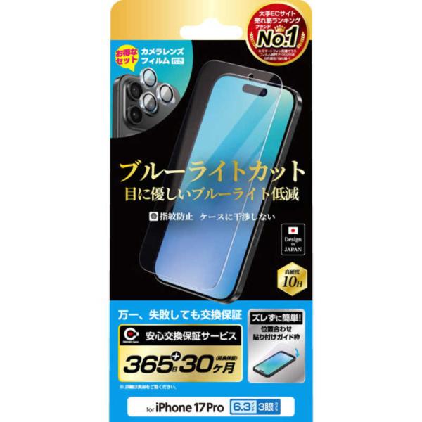 NIMASO iPhone 17Pro ガラスフィルム ブルーライトカット レンズフィルムセット 簡単貼り付けガイド枠付き NIG117CBL1S
