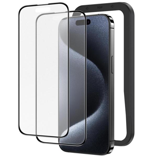 NIMASO アンチグレア iPhone 15 Pro Max用 ガラスフィルム 全面保護 反射防止 黒縁あり 強化ガラス フィルム サラサラ 高感